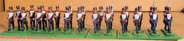The first Rose unit to be refurbished was this Bavarian battalion. It needed a little more work than most, as their coats were dark blue. The base figures seem to be French Guard Grenadiers with Austrian helmeted heads.