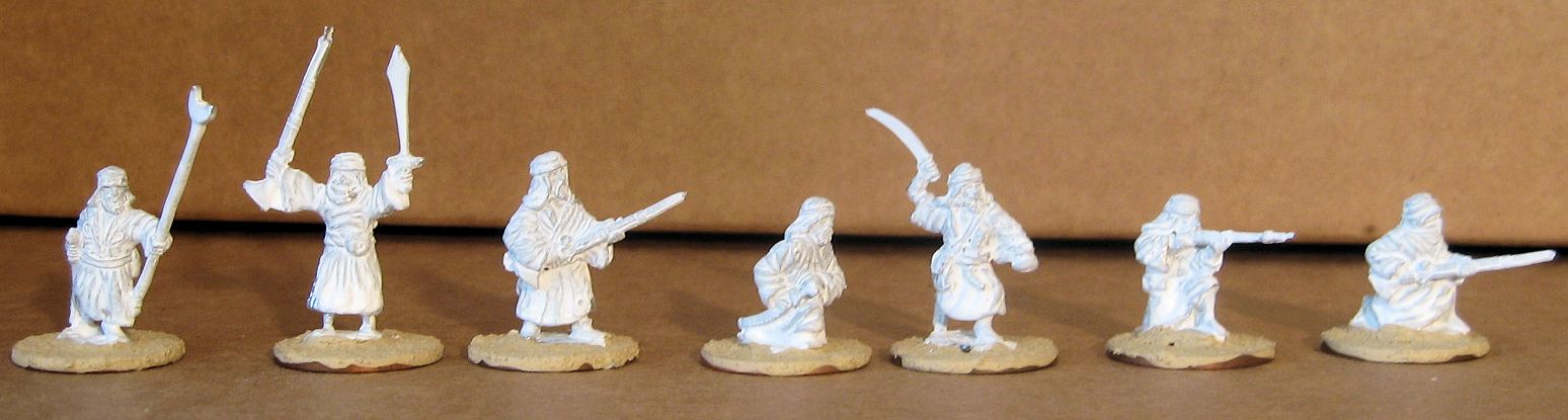 I am glad to say that with a bit of detective work I have managed to track down this French Foreign Legion and Arab 20mm figure range and have completed an order which includes at least one of each figure. So far all I have done is to glue them to pennies, white undercoat them and basetex the coins. I am confident they will paint up nicely.