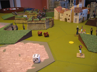 In our play test mining seemed too easy and too effective - the French destroyed one of the two main siege batteries, while the British blew up two major sections of glacis and covered way, and then made their breach through successfully mining and destroying a bastion, ravelin and section of wall. As at this point they were down to one 18 pdr siege gun, if the mine had failed they would have faced a long trickling bombardment or a risky and costly escalade.