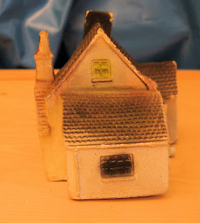 I have added posts for each of the scenic items in this line from the 60s (and possibly even the 50s). I have illustrated each post with an enlarged image from a 1961 catalogue, together with photographs of the examples I have. They have an authentically "grotty" historical character and seem to get even better with age. Some are of limited use with Hinton Hunt figures - the factory, oil tank, gasholder, coal dump and terraced house come to mind here. In addition to the items I have pictured there was a range of embankments, cuuttings and tunnels. There were also some trees, which were listed but not illustrated in the catalogue I have. I haven't seen these and have no pictures of them.On the pictures of my church, you can see a crack which is the result of hardening. Some have also warped a little - my feeling is this adds to the "hovelly" feeling quite nicely.